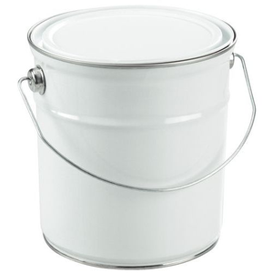 Voor het verpakken van verf, vernis, inkt, harsen, lijm ... Metalen emmer met metalen hengsel en plat deksel. Materiaal ijzer: buitenzijde vertind ijzer, binnenzijde ruw ijzer. Zeer eenvoudig te openen en sluiten door druk uit te uitoefenen.