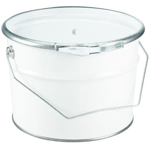 Voor het verpakken van verf, vernis, inkt, harsen, lijm ... Metalen emmer met metalen hengsel en plat deksel. Deksel met een beveiligde en onbreekbare zegelring met hendel. Materiaal ijzer: buitenzijde vertind ijzer, binnenzijde ruw ijzer. Zeer eenvoudig te openen en sluiten door druk uit te uitoefenen.