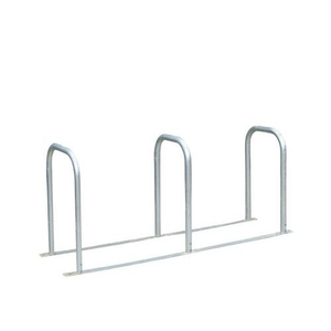 Fietssteun in U-vorm, Aantal plaatsen: 3, Model: Paal omgekeerde U, 3 plaatsen, Totale breedte: 3980 mm, Totale diepte: 550 mm, Totale hoogte: 850 mm, Materiaal: Gegalvaniseerd staal, Coating: Gegalvaniseerd, Kleur: Grijs, Paal Ø: 50 mm, Recyclebare verpakking: Ja - 100%, Recyclebaar product: Ja - 100%