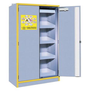 30 minuten brandwerende kast voor extra hoge veiligheid. Deuren kunnen in geopende stand worden gehouden. Vergrendeling met sleutel op 3 vonkvrije punten. Automatische vergrendeling bij temperaturen tot 50 °C. Stelpoten voor hoogteregeling. U kunt een rooster voor een stalen bak en opvanglegborden afzonderlijk bijbestellen.