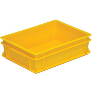 Stapelbare Euronorm-bak geel Rako, Totale inhoud: 10 L, Stapelbaar: ja, Totale hoogte: 117 mm, Totale breedte: 300 mm, Totale lengte: 400 mm, Euronorm-bak inhoud (Reeks): Small (1 - 20 L), Type zijkant: Gesloten, Gebruik voor voedsel: nee, Bak kleur: Geel, Type bodem: Gesloten, Max. statisch stapelvermogen: 500 kg, Materiaal: Polypropyleen, Nuttige breedte: 258 mm, Recyclebaar product: Ja - 100%, Gewicht: 0.926 kg, Min. gebruikstemperatuur: -20 °C, Max. gebruikstemperatuur: +80 °C, Nuttige hoogte: 114 mm, Nuttige lengte: 358 mm