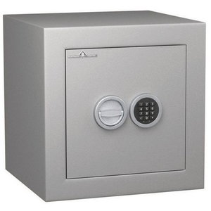 Kluis Vulcain-serie, Totale inhoud: 40 L, Type sluiting: Met code, Type nr.: VL40G4, Totale breedte: 475 mm, Totale diepte: 450 mm, Totale hoogte: 480 mm, Kleur: Grijs, Gewicht: 210 kg, Aantal legborden: 1, RAL: 9006, Geleverd gemonteerd: ja, Nuttige breedte: 345 mm, Nuttige diepte: 315 mm, Nuttige hoogte: 360 mm