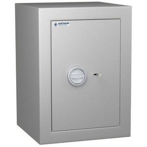 Kluis Vulcain-serie van 40 tot 205 liter. Anti-inbraakbeveiliging conform de Duitse norm VDMA niveau B. Vergrendelingssysteem met mangaanbepantsering tegen doorboring. In hoogte verstelbaar legbord. Verankeringsgat in de onderkant, ø14 mm.