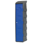 Garderobekast kunststof, Type garderobekast: Met vakken en garderobe, Materiaal: Polyethyleen, Aantal kastkolommen: 1, Onderstel: Op sokkel, Breedte kolom: 322 mm, Type sluiting: Met hangslot, Hoogte: 1972 mm, Breedte: 400 mm, Diepte: 500 mm, Nuttige hoogte vak: 1702 mm, Nuttige breedte vak: 322 mm, Nuttige diepte vak: 450 mm, Kleur ombouw: Antraciet, Kleur deur: Blauw, Geleverd gemonteerd: ja, Garderobekast gebruiksomgeving: Lichte industrie, Aantal vakken/kolom: 1, Recyclebare verpakking: Ja - 100%, Recyclebaar product: Ja - 100%, Aantal vakken: 1, Gebruik voor voedsel: ja