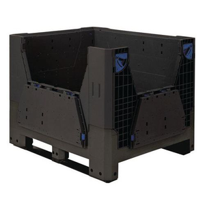 Palletbox opklapbaar Klapa, Totale inhoud: 790 L, Max. belasting: 500 kg, Totale hoogte: 975 mm, Totale breedte: 1000 mm, Totale lengte: 1200 mm, Gebruik voor voedsel: nee, Kleur: Zwart, Model: Dicht, Pallet basis: 2 zolen, Max. dynamisch draagvermogen: 1100 kg, Max. statisch draagvermogen: 2750 kg, Materiaal: Gerecycled PE, Nuttige hoogte: 767 mm, Nuttige breedte: 920 mm, Aantal neerklapbare zijden: 2, Recyclebaar product: Ja - 100%, Gerecycled product: 100 %, Eco-verantwoordelijke aanpak: ja, Gewicht: 51 kg, Min. gebruikstemperatuur: -20 °C, Max. gebruikstemperatuur: 80 °C, Nuttige lengte: 1120 mm