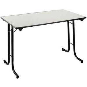 Klaptafel rechthoekig, Tafelblad kleur: Grijs, Onderstel kleur: Zwart, Lengte: 140 cm, Diepte: 70 cm, Hoogte: 74 cm, Paal Ø: 3 cm, Dikte ingeklapt: 10 cm, Gewicht: 21 kg, Randen materiaal: ABS, Onderstel materiaal: Epoxy, Plateau materiaal: Gemelamineerd, Model: Rechthoek, Dikte tafelblad: 1.9 cm