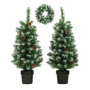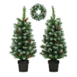 Set 2 kerstbomen en 1 krans Norton met verlichting
