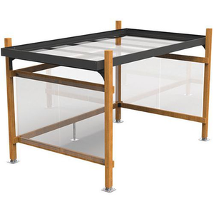 Fietsen- en motorstalling, onderscheidt zich door zijn moderne stijl, half hout, half staal. Frame van larixhout. Vierkante palen van geschaafd larixhout van 100 mm en liggers van larixhout 120 x 45 mm. Steunbalk op dak van stalen buizen en verstelbare poten op voetplaten. Thermohardende polyesterhars gebakken op 200°C, UV-bestendig. Dak van polycarbonaat kanaalplaat, behandeld tegen UV, met een dikte van 10 mm. Montageschroeven van roestvast staal, klasse A2. Gehard transparant veiligheidsglas, met een dikte van 6 mm. Fietsenrek afzonderlijk te bestellen Bij een aanvraag om installatie moet de vragenlijst worden ingevuld om ervoor te zorgen dat het product zo snel mogelijk wordt geleverd en de installatie in optimale omstandigheden kan worden uitgevoerd. Dit product kan niet worden geretourneerd: product wordt op maat gemaakt.