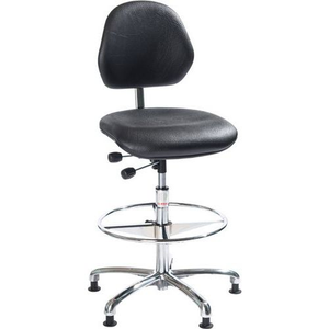 Gevulde stoel voor de werkplaats van imitatieleer, Zitting materiaal: Stof, Stoel model: Hoog, Min. zithoogte: 59 cm, Max. zithoogte: 85 cm, Kleur: Zwart, Zitbreedte: 44 cm, Zitdiepte: 44 cm, Rugbreedte: 37 cm, Rughoogte: 33 cm, Onderstel materiaal: Aluminium, Asynchroontechniek: ja, Recyclebare verpakking: Ja - 100%, Gerecyclede verpakkingen: 70 %, Recyclebaar product: Ja - 100%, Gerecycled product: 9 %, Rughoogte-instelling: ja, Stapelbaar: nee, Max. steungewicht: 110 kg, Zitneiginstelling: ja, Zithoogte verstelling: ja