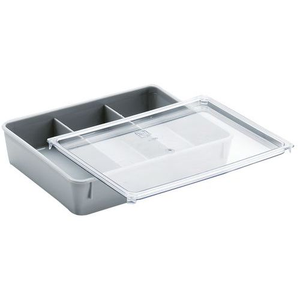 Modulair opbergvak voor Euronorm-bak, Materiaal: Polyethyleen, Voor bak type: Euronorm-bak, Voor bak breedte: 300 mm, Voor bak lengte: 400 mm, Type verdeelschotten: Modulaire locker, Kleur: Grijs, Aantal vakken: 3, Recyclebaar product: Ja - 100%, Type: Vuilniskast