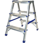 Opstapkruk klein, Max. belasting: 150 kg, Platform hoogte: 405 mm, Aantal treden incl. platform: 3, Lengte platform: 180 mm, Breedte platform: 350 mm, Materiaal: Aluminium, Kleur: Zilver Blauw, Totale hoogte: 610 mm, Totale breedte: 560 mm, Gewicht: 2.5 kg, Model: 700-03, Zwenkwielen: nee, Diepte: 580 mm