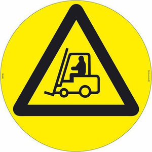 Waarschuwingsbord: Waarschuwing heftruck, Zelfklevend: ja, Paneel vorm: Rond, Type bord: Zone, Opdruk: Waarschuwing heftruck, Type: Ø = 410 mm, Lengte: 410 mm, Breedte: 410 mm
