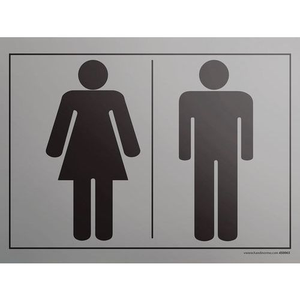 Bord gegraveerd pictogram man/vrouw 10 x 14 cm, Materiaal: ABS, Hoogte: 100 mm, Paneel vorm: Rechthoek, Breedte: 140 mm, Kleur: Grijs, Bevestiging: Om te schroeven of te lijmen, Type: Indicatie, Special Covid-19: nee, Recyclebaar product: Ja - 100%, Taal: Frans