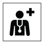 Pictogram voor ziekenhuis arts in Gravoply, Materiaal: ABS, Hoogte: 250 mm, Paneel vorm: Vierkant, Breedte: 250 mm, Kleur: Wit, Bevestiging: Om te schroeven of te lijmen, Type: Indicatie, Special Covid-19: nee, Recyclebaar product: Ja - 100%, Taal: Frans