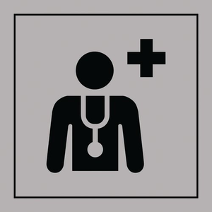 Pictogram voor ziekenhuis arts in Gravoply, Materiaal: ABS, Hoogte: 350 mm, Paneel vorm: Vierkant, Breedte: 350 mm, Kleur: Grijs, Bevestiging: Om te schroeven of te lijmen, Type: Indicatie, Special Covid-19: nee, Recyclebaar product: Ja - 100%, Taal: Frans