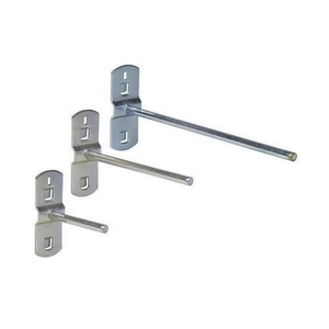 Enkele gereedschapshaak van gegalvaniseerd plaatstaal en van draad met een diameter van 5 mm. Met kunststof valbeveiliging om te voorkomen dat houders van het geperforeerde paneel vallen. Eenvoudig in gebruik.