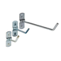 Enkele gereedschapshaak van gegalvaniseerd plaatstaal en van draad met een diameter van 5 mm. Met kunststof valbeveiliging om te voorkomen dat houders van het geperforeerde paneel vallen. Eenvoudig in gebruik.