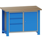 Werktafel met vergrendelbare kast. Houten werkblad. Afgeschuinde randen. Constructie van gegalvaniseerd staal. Draagvermogen: 900 kg.