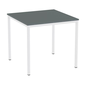 Eettafel Versys, Lengte: 800 mm, Diepte: 800 mm, Tafelblad materiaal: Hardboard, Onderstel kleur: Wit, Tafelblad kleur: Donkergrijs, Hoogte: 743 mm, RAL: 9003, Montage: Zelfbouw, Dikte tafelblad: 18 mm