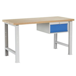 Werkplaatstafels voor lasateliers, Breedte: 1500 mm, Diepte: 685 mm, Frame kleur: Grijs, Hoogte: 840 mm, Aantal laden: 1, Kleur: Blauw, Montage: Zelfbouw, Max. belasting lade: 45 kg