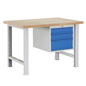 Werkplaatstafel voor lasatelier 80 cm breed, Breedte: 1200 mm, Diepte: 800 mm, Frame kleur: Grijs, Hoogte: 840 mm, Aantal laden: 3, Kleur: Blauw, Montage: Zelfbouw, Max. belasting lade: 35 kg