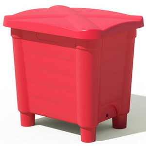 Opslagbak met deksel en voeten, Totale inhoud: 200 L, Totale hoogte: 745 mm, Totale breedte: 600 mm, Totale lengte: 800 mm, Bak kleur: Rood, Kleur: Rood, Gebruik voor voedsel: nee