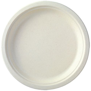 Doos van 1.000 platte, ronde borden van vezelmateriaal. Vervaardigd van suikerrietvezel. Vet-, olie- en zuurwerend.