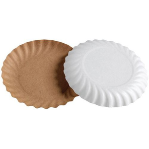 Gebaksbord gegolfd kraft rond 125 mm - Set van 500. Vervaardigd van bestendig, stevig karton. Tweekleurig: kraft bovenkant en witte onderkant. Vetbestendig bordje. Displaystandaard voor gebak en catering.