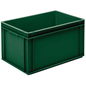 Euronormbak, Totale inhoud: 60 L, Stapelbaar: ja, Totale hoogte: 325 mm, Totale breedte: 400 mm, Totale lengte: 600 mm, Euronorm-bak inhoud (Reeks): Groot (41 - 175 L), Type zijkant: Gesloten, Gebruik voor voedsel: nee, Bak kleur: Groen, Materiaal: Kunststof