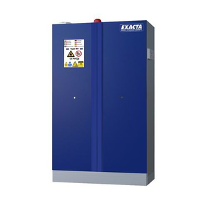 Hoge blauwe veiligheidskast voor lithium-batterijen, met alarmcentrale en brandblusser, Materiaal: Staal, Totale hoogte: 2120 mm, Totale breedte: 1200 mm, Voor producten: (Lithium)batterijen, Brandveilig: 90 min, Totale diepte: 600 mm, Aantal vakken: 1, Aantal deuren: 2, Aantal legborden: 4, Kleur ombouw: Lichtgrijs, Kleur deur: Blauw, Max. belasting: 80 kg, Nuttige hoogte: 1440 mm, Nuttige breedte: 1095 mm, Totale hoogte (Reeks): Hoog (1500 - 2300 mm), Totale breedte (Reeks): 800 mm, Gewicht: 355 kg, Nuttige diepte: 446 mm, Deur openingstype: Klapdeur, Aantal contactdozen: 0, Type sluiting: Met sleutel, RAL: 7035, CE: ja, Coating: Epoxy, Plaatdikte: 1 mm