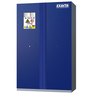 Hoge blauwe veiligheidskasten voor lithium-ionbatterijen met alarm, Materiaal: Staal, Totale hoogte: 1950 mm, Totale breedte: 1200 mm, Voor producten: (Lithium)batterijen, Brandveilig: 90 min, Totale diepte: 600 mm, Aantal vakken: 1, Aantal deuren: 2, Aantal legborden: 4, Kleur ombouw: Lichtgrijs, Kleur deur: Blauw, Max. belasting: 80 kg, Nuttige hoogte: 1440 mm, Nuttige breedte: 1095 mm, Totale hoogte (Reeks): Hoog (1500 - 2300 mm), Totale breedte (Reeks): 800 mm, Gewicht: 355 kg, Nuttige diepte: 446 mm, Deur openingstype: Klapdeur, Aantal contactdozen: 0, Type sluiting: Met sleutel, RAL: 7035, CE: ja, Coating: Epoxy, Plaatdikte: 1 mm