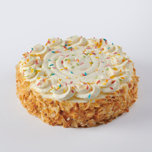 Deze feestelijke ronde slagroomtaart is een heerlijke traktatie voor elke gelegenheid. De zachte cake wordt gevuld met romige slagroom en een frisse fruitige laag, wat zorgt voor een perfect gebalanceerde smaak. De taart is feestelijk afgewerkt met vrolijke chocoladeconfetti en heeft een klassieke uitstraling die past bij elke viering. Of het nu een verjaardag, jubileum of ander feest is, deze slagroomtaart maakt het extra bijzonder.
