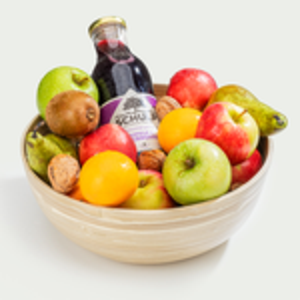 De fruitmand groot is rijkelijk gevuld met 18-20 stuks heerlijk vers fruit en een sap van Nederlandse bodem. Deze duurzame bamboeschaal is daarnaast nog eens ideaal voor (her)gebruik zodat je naast het fruit hier nog plezier van hebt. De inhoud van de mand is als volgt samengesteld*:
