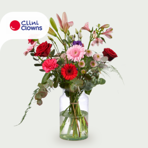 Met dit prachtige boeket laat je aan iemand weten dat je aan hem of haar denkt, en dat hartverwarmende gebaar gaat verder dan de ontvanger van deze bloemen. Met de aanschaf van dit boeket doe je automatisch een donatie aan Stichting CliniClowns. CliniClowns brengen afleiding en plezier aan zieke kinderen, mensen met dementie en kinderen die gevlucht zijn. Met humor, improvisatie en echt contact helpen ze stress, angst en eenzaamheid te verminderen. Ze bezoeken ziekenhuizen, prikpoli’s en zorginstellingen, stemmen hun spel af op het moment en de persoon. Door hun speelse aanpak voelen mensen zich weer even zichzelf, in plaats van patiënt. Het effect is blijvend: een lach geeft kracht, troost en vertrouwen. Bij aankoop van dit prachtige boeket doneer je automatisch €2,50 aan Stichting CliniClowns. Topbloemen.nl doet hier nog een schepje bovenop en verdubbelt jouw bijdrage tot €5,- per verkocht boeket! Zo zorgen we er samen voor dat er zoveel mogelijk mensen een bezoek van een CliniClown kunnen krijgen. Doe je mee?
