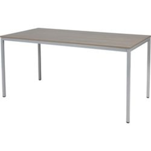 Schaffenburg vergadertafel / kantinetafel Domino. Afmetingen: 160 x 80 cm. Vaste hoogte: 74 cm. Blad: 25 mm melamine. Kleur: robson eiken. T-poot framekleur: aluminium.